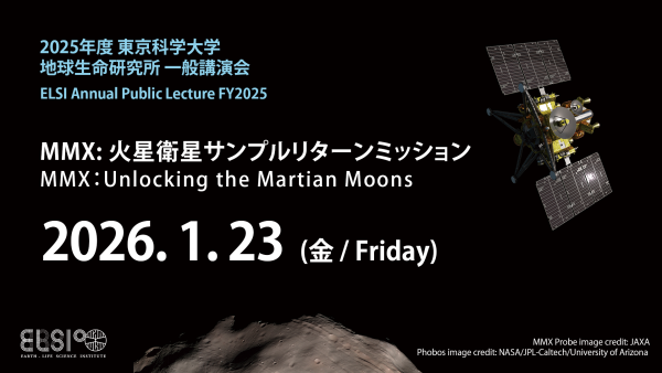 ELSI Annual Public Lecture FY2025 will be held on Friday, 23 January 2026. The theme of the lecture is ‘MMX: Unlocking the Martian Moons’, and the event will feature ELSI’s Professor Hidenori Genda, and Emma Caminiti, Aerospace Project Research Associate, ISAS, JAXA.