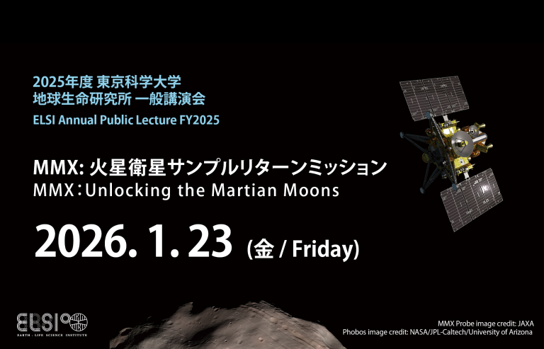 2026年1月23日(金)に東京科学大学 地球生命研究所 一般講演会を開催いたします。今年度は「MMX:火星衛星サンプルリターンミッション」をテーマに、ELSIの玄田英典教授と、JAXA/ISASのエマ・カ … 続きを読む 2025年度 東京科学大学 地球生命研究所 一般講演会
