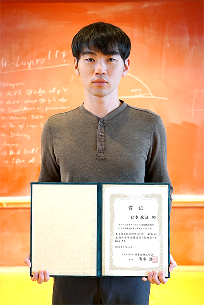 「日頃からご指導くださっている松浦友亮先生、Liam M. Longo先生、研究室メンバーに心より感謝申し上げます。本受賞を励みに、発見した酵素の応用可能性をさらに探究し、生物工学の進展に少しでも寄与できるよう、今後も一層精進してまいります。」と松本さんは述べています。
